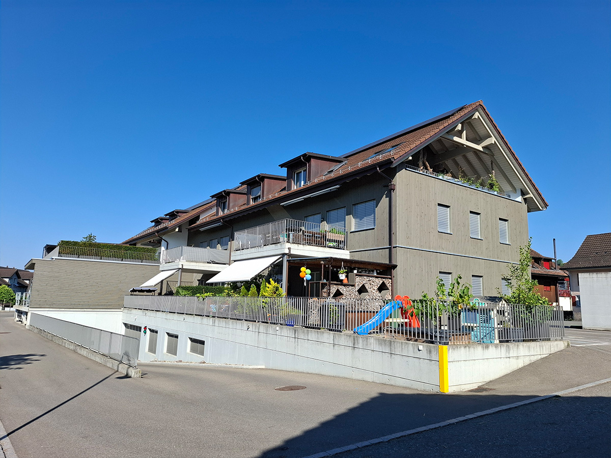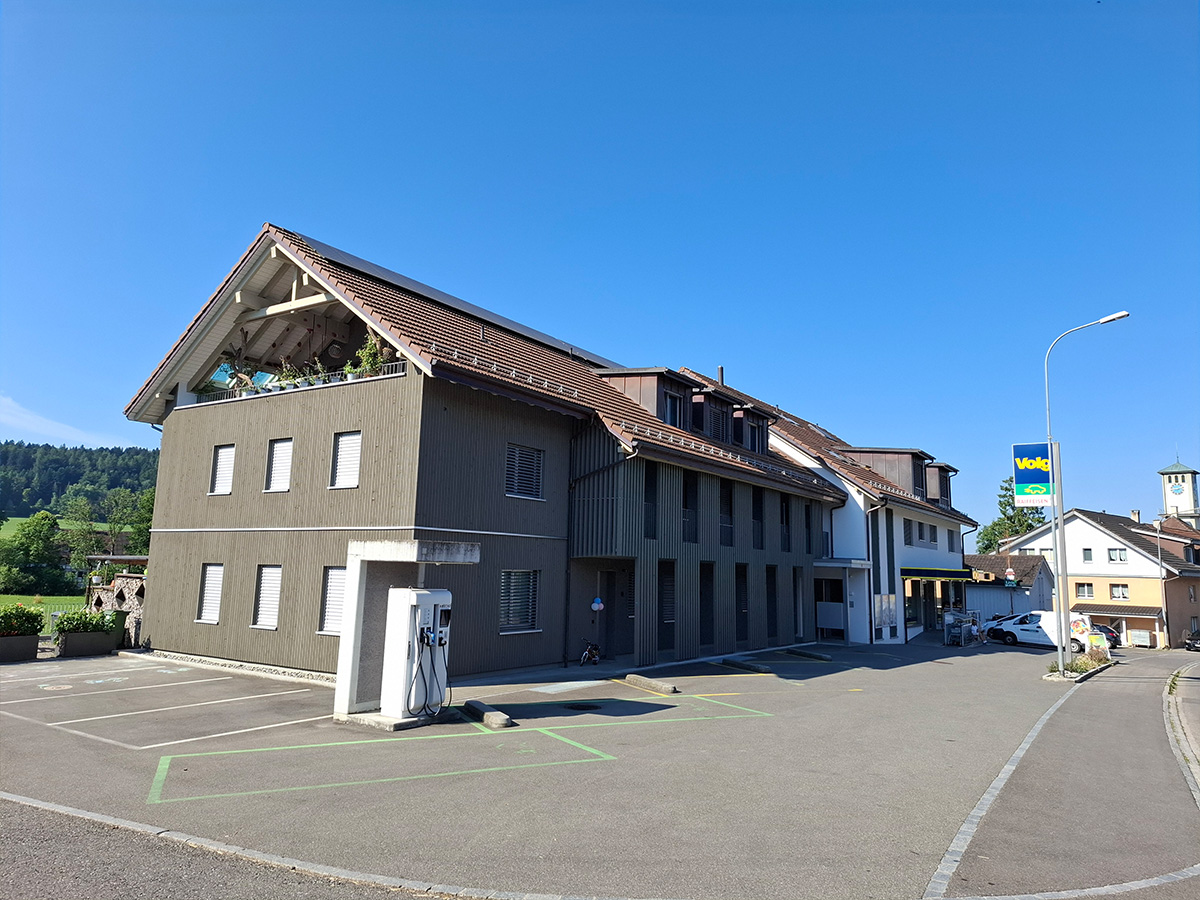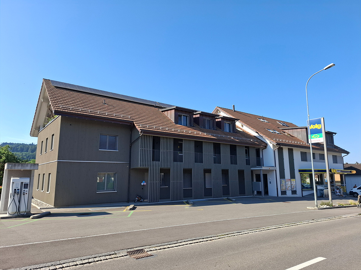 Nachdem die Landi Thundorf ihren Betrieb eingestellt hatte, konnte eine Lösung mit dem Ersatzbau mit 5 Wohnungen inkl. Tiefgarage gefunden werden. Der westliche Gebäudetrakt wurde umgebaut und aufgestockt und so entstanden zum aufgefrischten Volg-Laden 3 zusätzliche Wohnungen.
